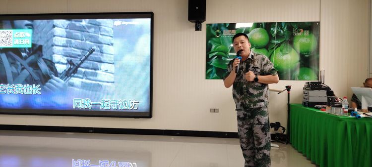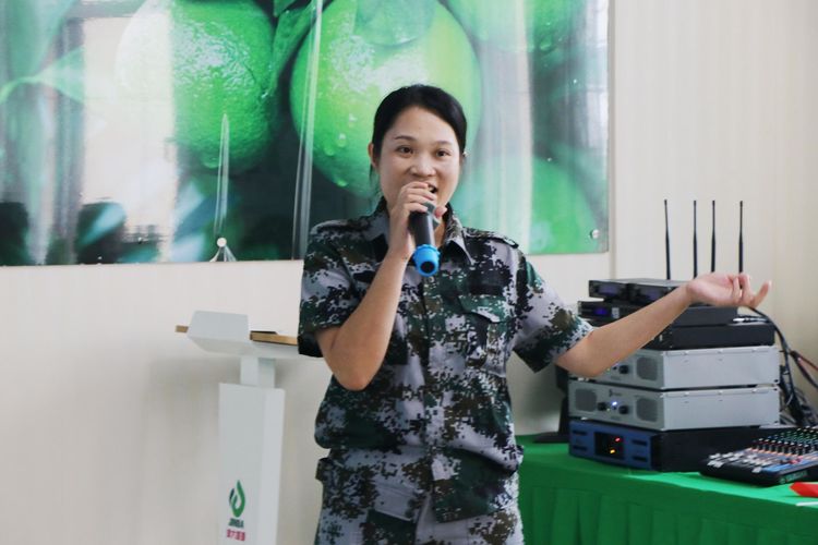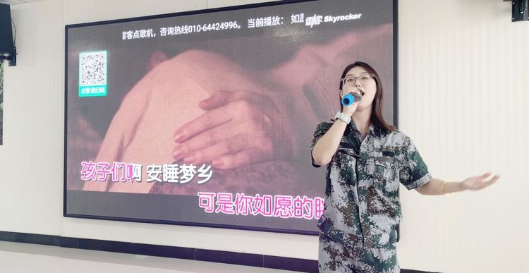 Chen Zhaotong from Hainan Qinweikang Marketing Company sings the song 'Green Flowers in the Army'